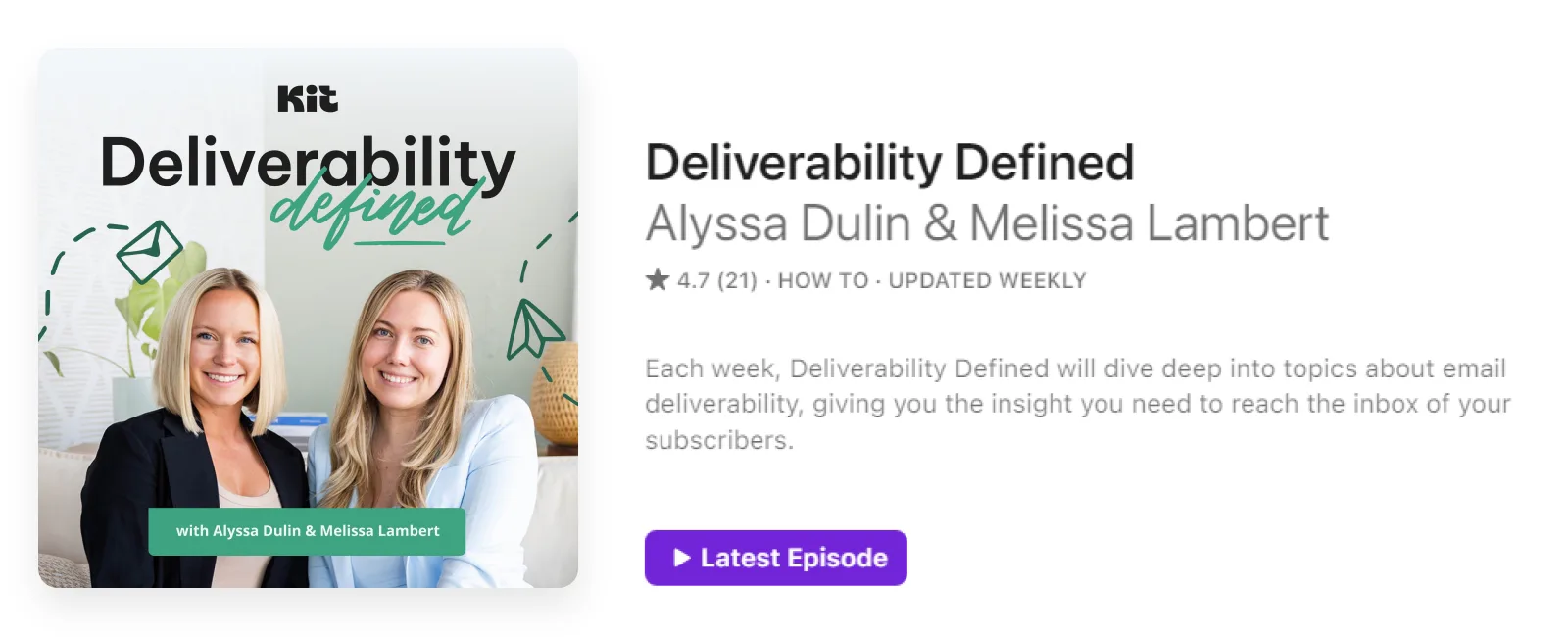We have two conversational podcasts here at Kit: Deliverability Defined and The Future Belongs to Creators.