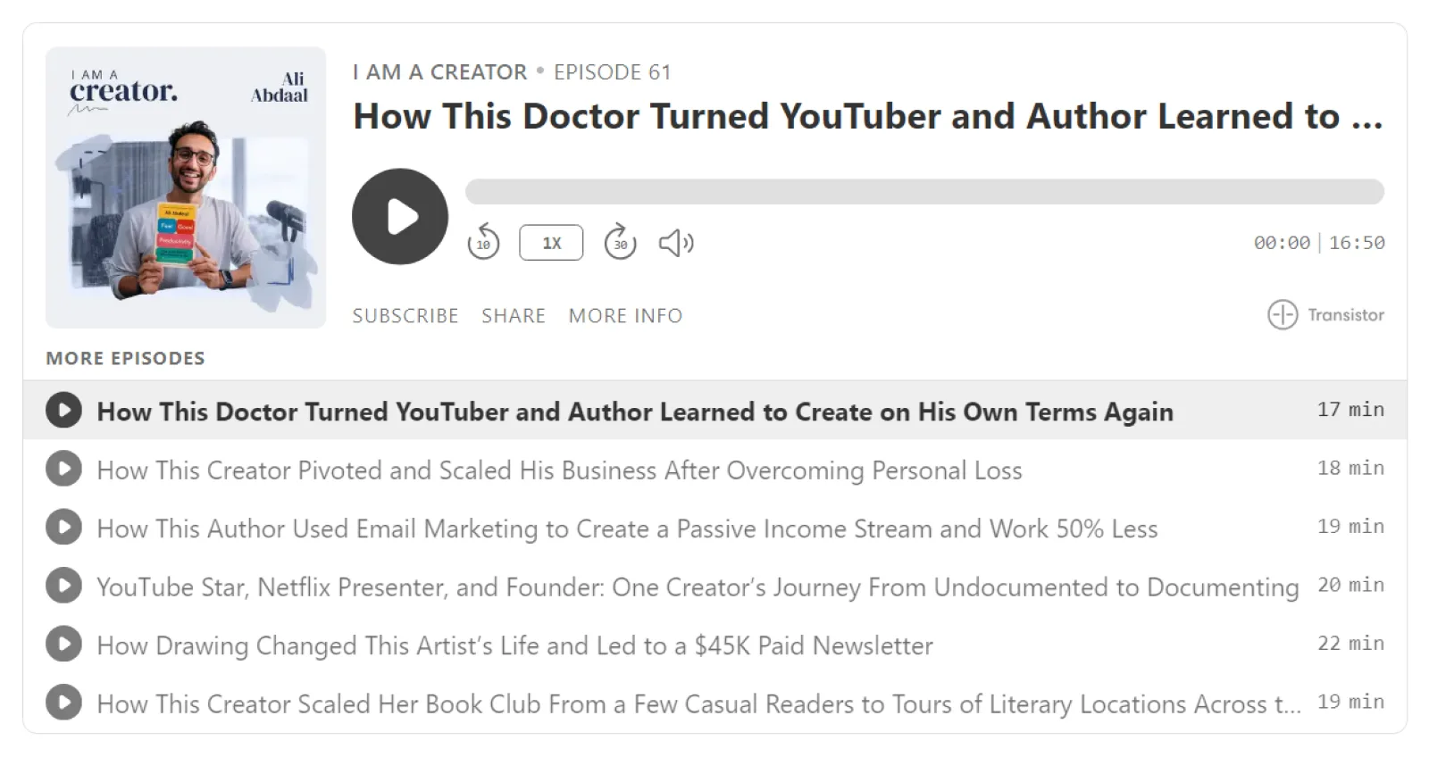 For example, Kit’s I Am A Creator podcast features creators from various niches discussing life as a creator.