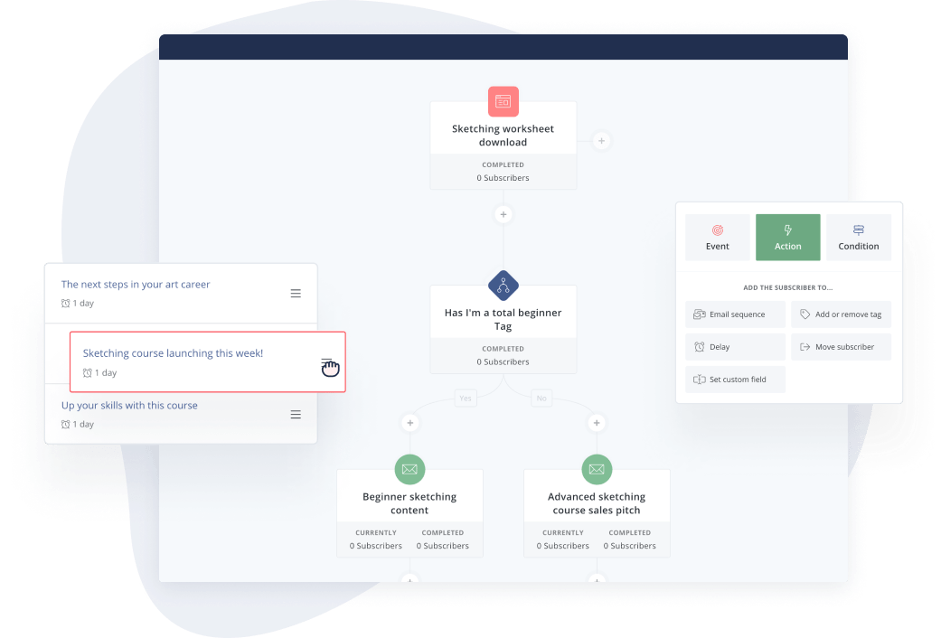 Our Visual Automations builder can automate more than just evergreen funnels. Organize your audience based on entry, interaction, and interests, so your content stays personalized.