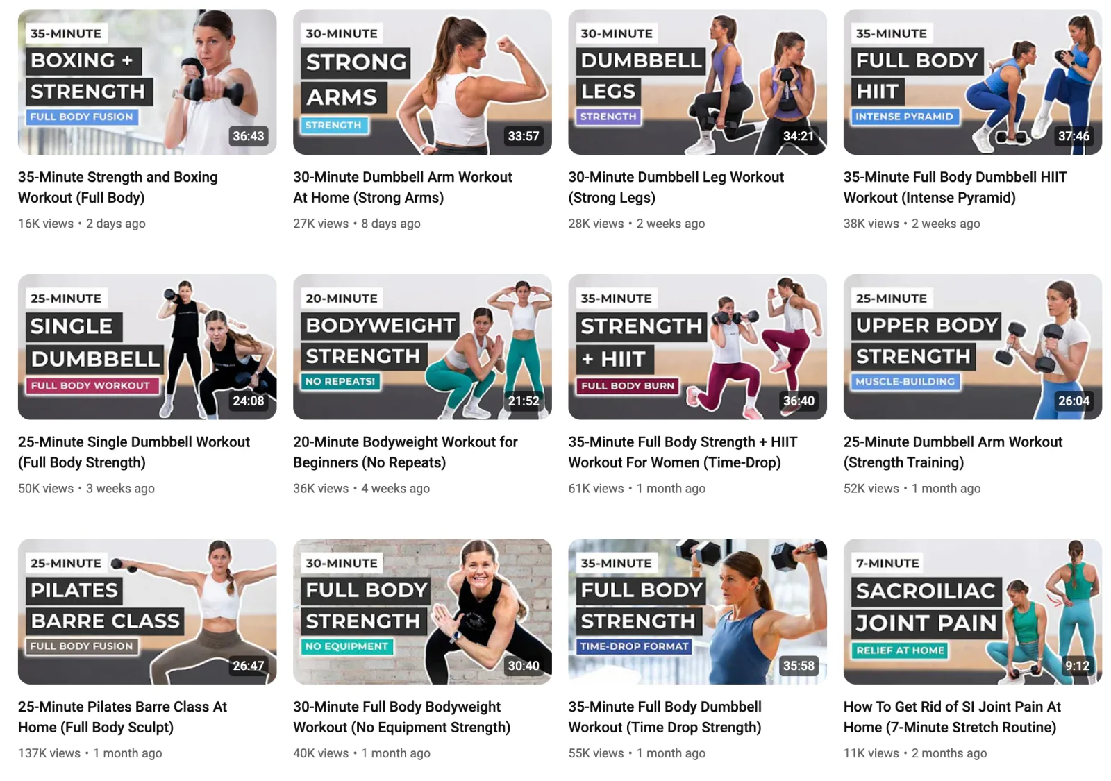 Lindsey Bomgren’s consistent, catchy video titles. Image via Nourish Move Love on YouTube.