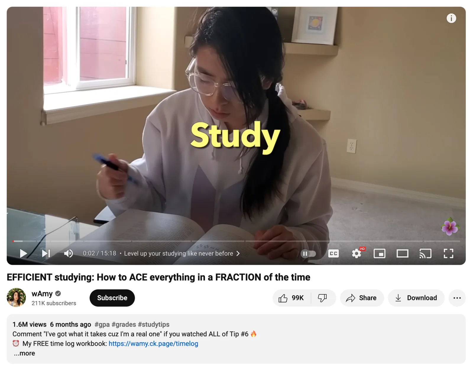 In her efficient studying video, Amy used hashtags #gpa, #grades, and #studytips—all of them simple, yet specific.