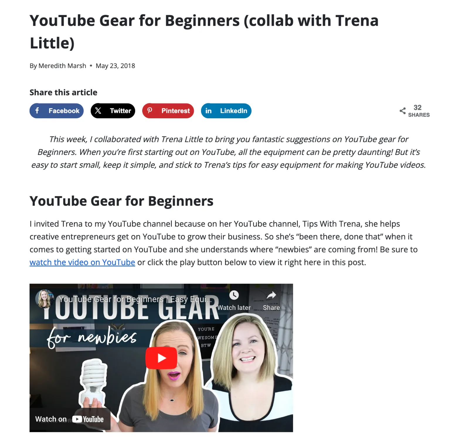 Meredith Marsh and Trena Little both create content aimed at business owners and YouTubers. They joined forces by partnering on a topic their audience loves: YouTube gear for beginners.