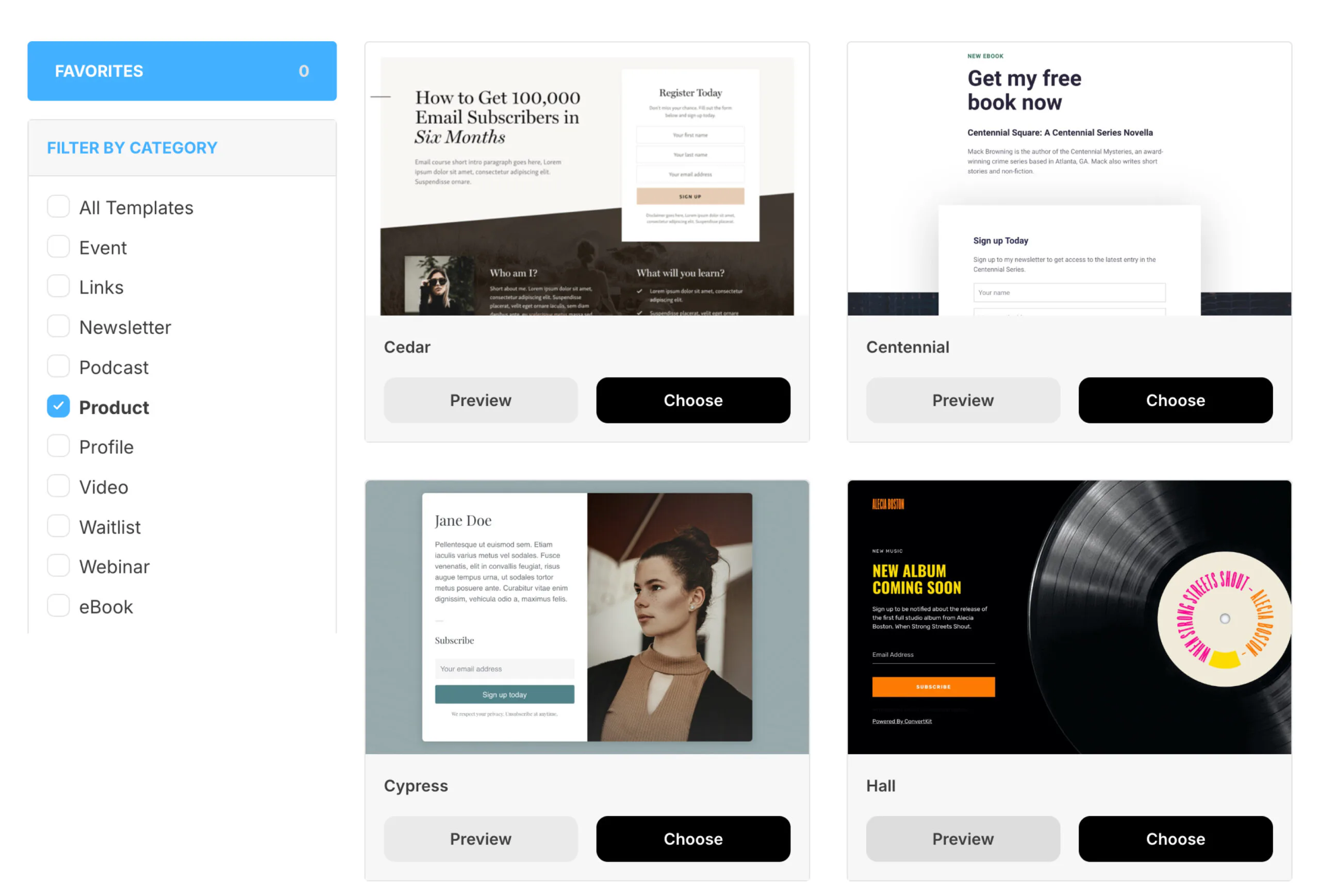 You’ll need to create a landing page for each one of your incentives so that people have a place to sign up for your email list and get the freebie they’re after.