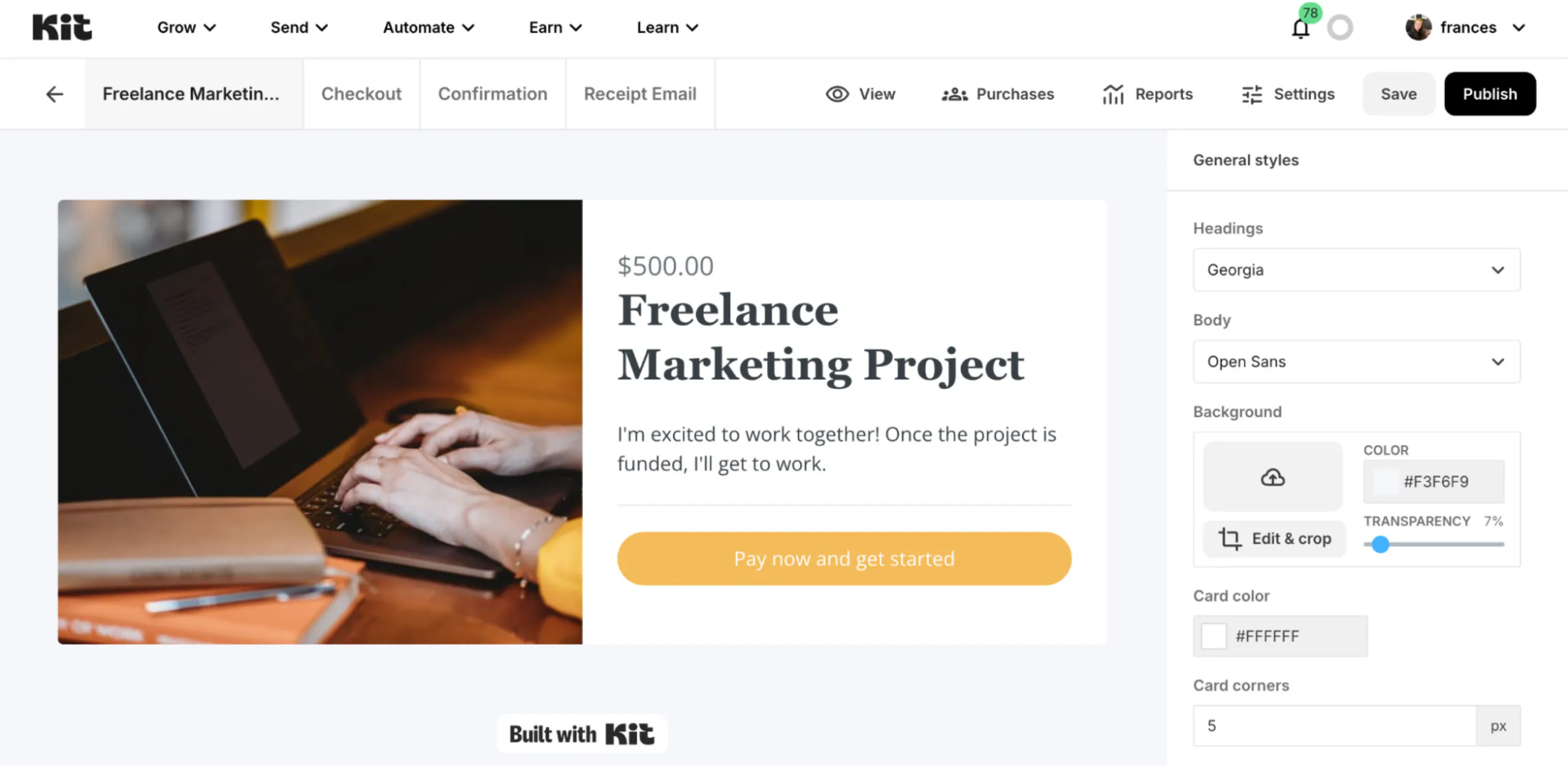 Kit has tools for marketers that make growing a business without a team easier. Design irresistible landing pages and emails from free templates, grow your audience with automations and referrals, and collect payments for all from a single tool.