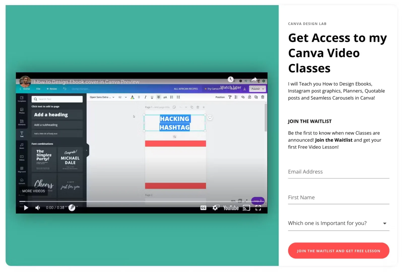 A great example comes from Creatorialz. By signing up, you get a first lesson about Canva for free.