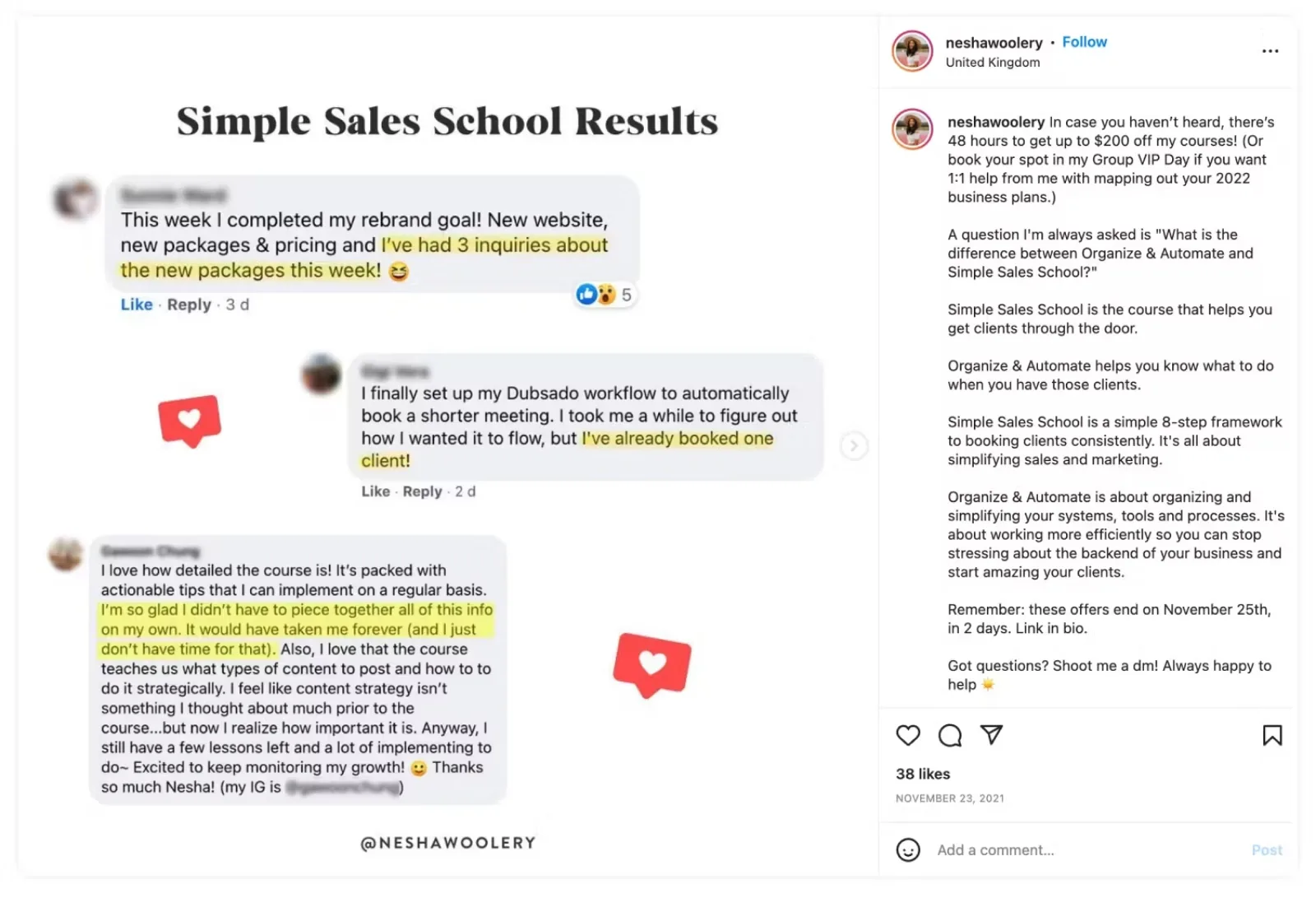Check out how Nesha Woolery, a business mentor, did this when running a Black Friday discount for her courses.