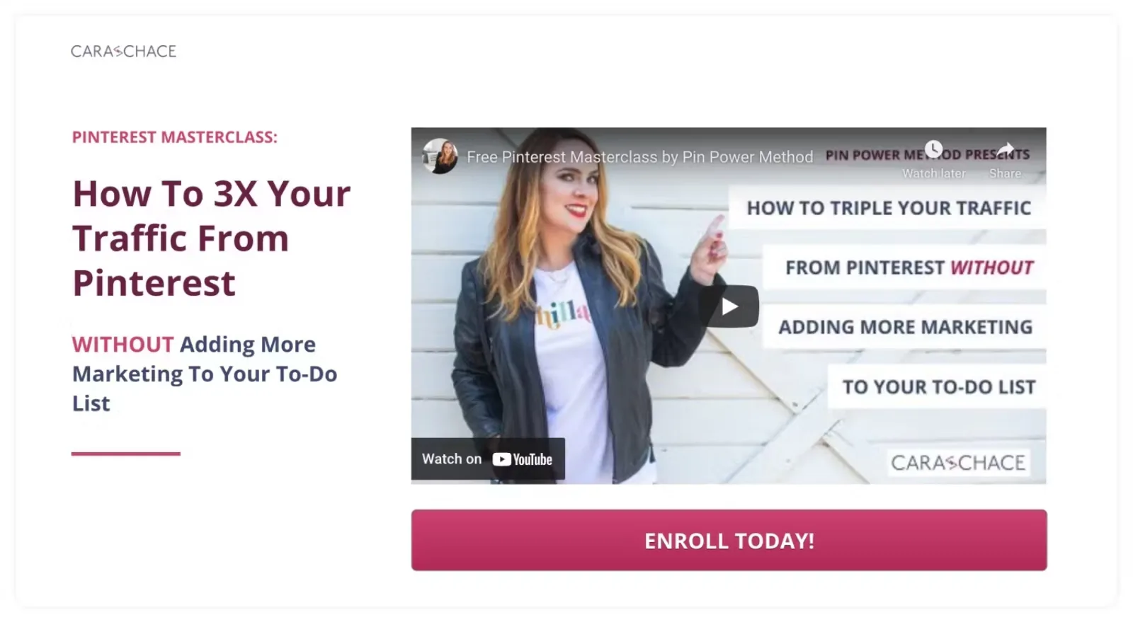 This is exactly what Cara Chace does with her free Pinterest masterclass, which then pitches her Pin Power Method course and membership: