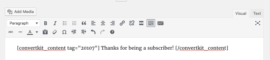 Add tags to subscribers when they visit a specific page and display content on your pages based on the tags a subscriber has! Custom content features are available starting with ConvertKit for WordPress version 1.5.0.